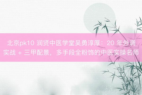 北京pk10 润贤中医学堂吴勇淳厚:20 年外调实战 + 三甲配景,多手段全粉饰的中医实操名师