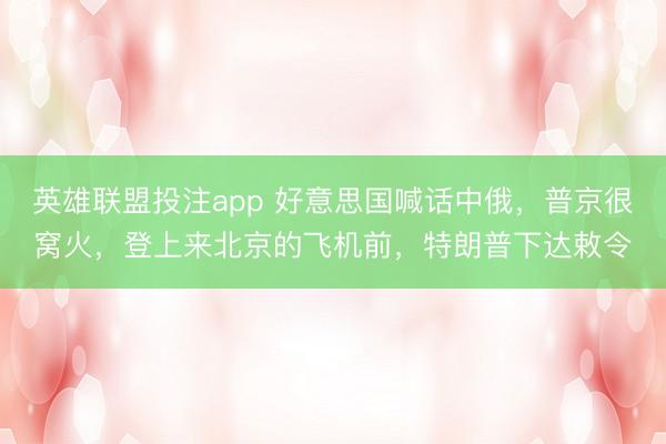 英雄联盟投注app 好意思国喊话中俄,普京很窝火,登上来北京的飞机前,特朗普下达敕令