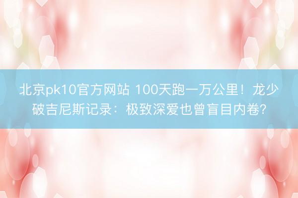 北京pk10官方网站 100天跑一万公里!龙少破吉尼斯记录:极致深爱也曾盲目内卷?