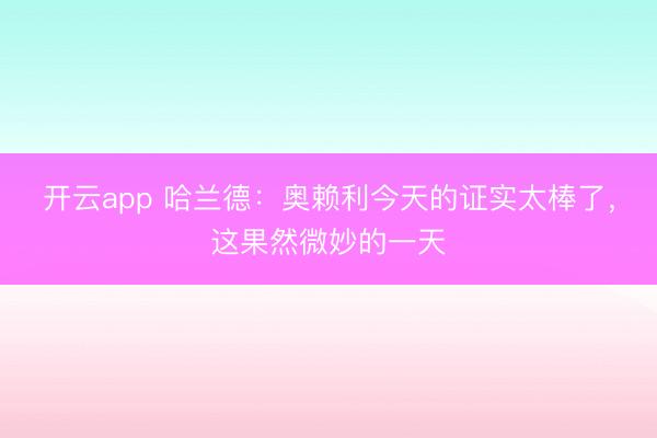 开云app 哈兰德:奥赖利今天的证实太棒了,这果然微妙的一天