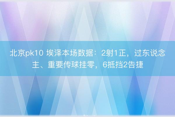 北京pk10 埃泽本场数据:2射1正,过东说念主、重要传球挂零,6抵挡2告捷