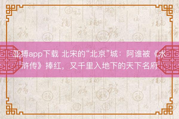 亚搏app下载 北宋的“北京”城:阿谁被《水浒传》捧红,又千里入地下的天下名府