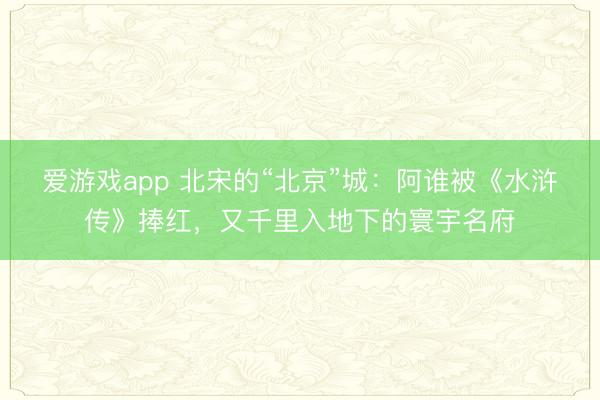 爱游戏app 北宋的“北京”城:阿谁被《水浒传》捧红,又千里入地下的寰宇名府