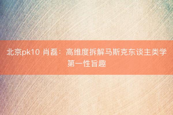 北京pk10 肖磊:高维度拆解马斯克东谈主类学第一性旨趣
