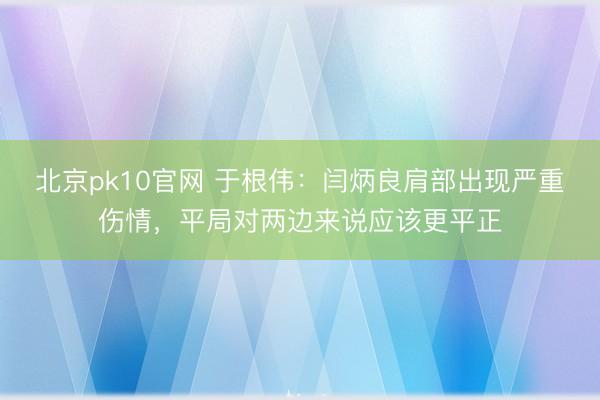 北京pk10官网 于根伟:闫炳良肩部出现严重伤情,平局对两边来说应该更平正