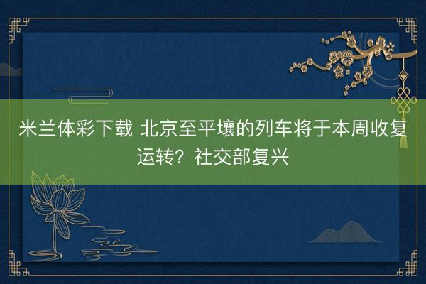 米兰体彩下载 北京至平壤的列车将于本周收复运转?社交部复兴