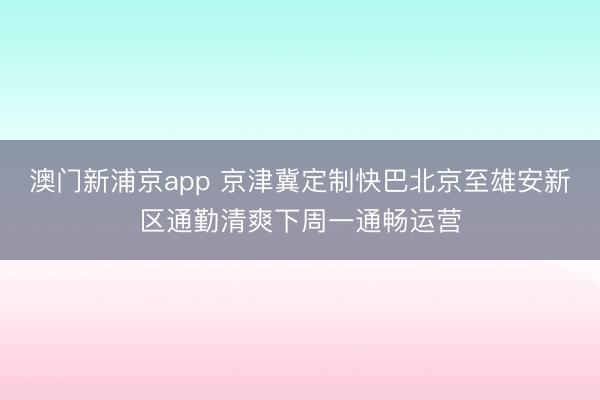 澳门新浦京app 京津冀定制快巴北京至雄安新区通勤清爽下周一通畅运营