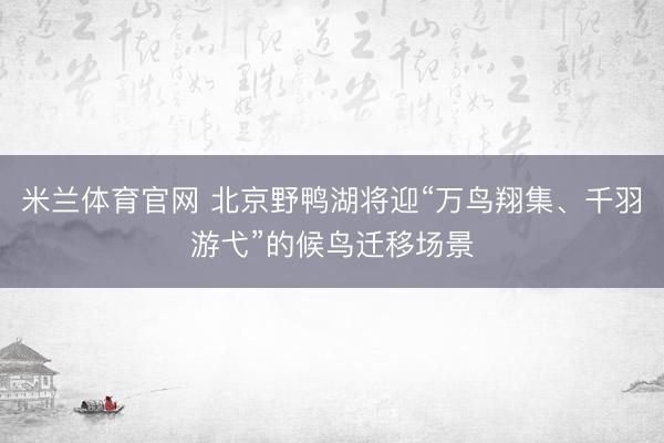 米兰体育官网 北京野鸭湖将迎“万鸟翔集、千羽游弋”的候鸟迁移场景