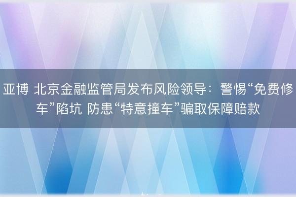 亚博 北京金融监管局发布风险领导:警惕“免费修车”陷坑 防患“特意撞车”骗取保障赔款