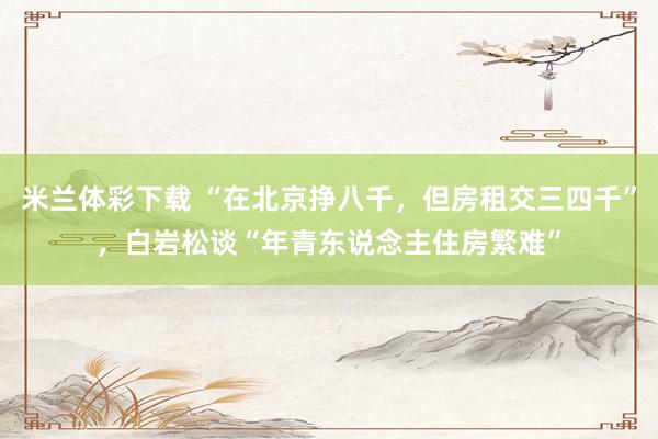 米兰体彩下载 “在北京挣八千,但房租交三四千”,白岩松谈“年青东说念主住房繁难”