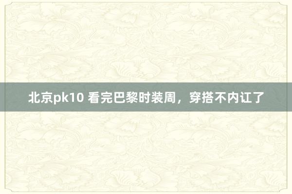 北京pk10 看完巴黎时装周,穿搭不内讧了