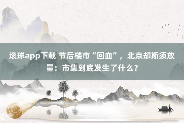 滚球app下载 节后楼市“回血”,北京却斯须放量:市集到底发生了什么?