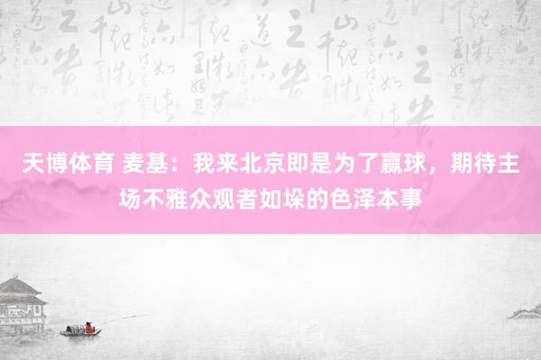 天博体育 麦基:我来北京即是为了赢球,期待主场不雅众观者如垛的色泽本事