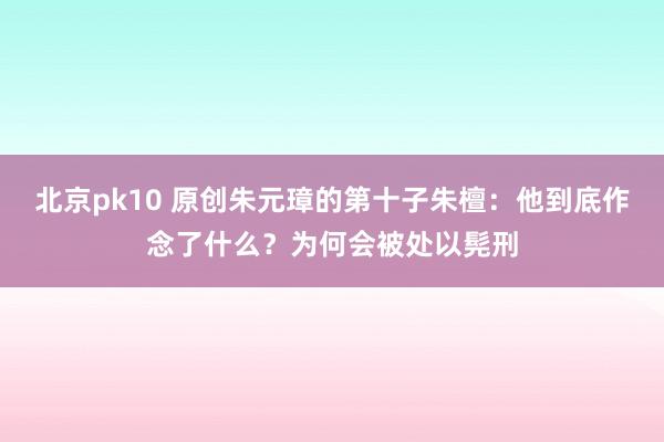 北京pk10 原创朱元璋的第十子朱檀:他到底作念了什么?为何会被处以髡刑