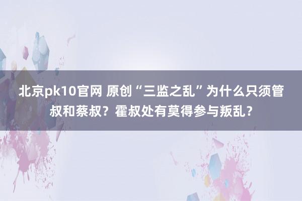 北京pk10官网 原创“三监之乱”为什么只须管叔和蔡叔?霍叔处有莫得参与叛乱?