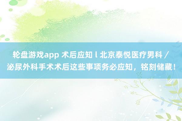 轮盘游戏app 术后应知 l 北京泰悦医疗男科/泌尿外科手术术后这些事项务必应知,铭刻储藏!