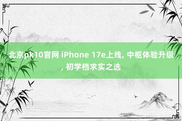 北京pk10官网 iPhone 17e上线, 中枢体验升级, 初学档求实之选