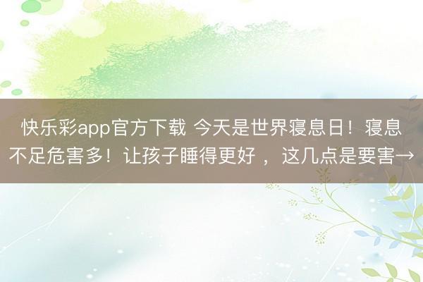 快乐彩app官方下载 今天是世界寝息日!寝息不足危害多!让孩子睡得更好 ,这几点是要害→