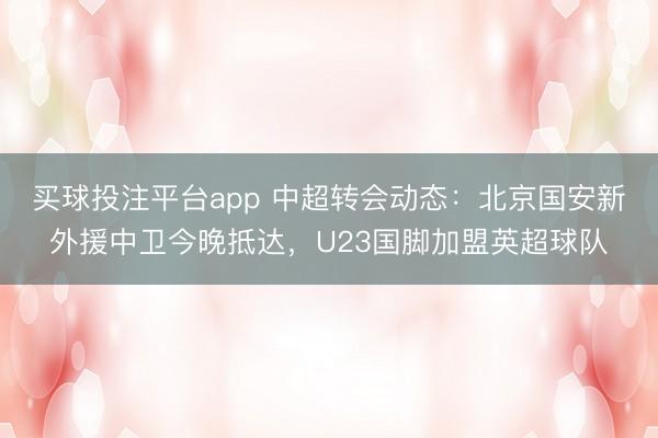 买球投注平台app 中超转会动态:北京国安新外援中卫今晚抵达,U23国脚加盟英超球队