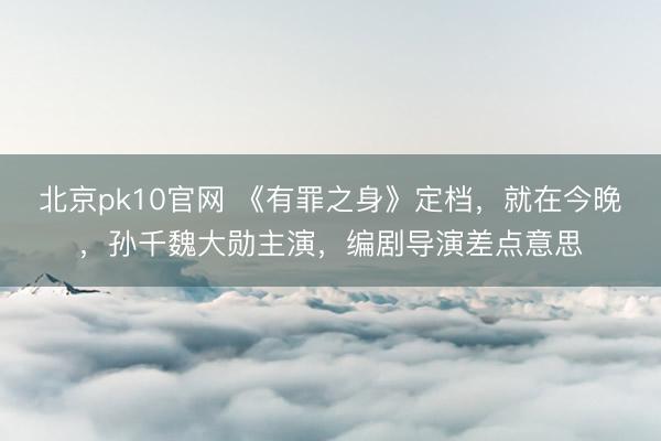 北京pk10官网 《有罪之身》定档,就在今晚,孙千魏大勋主演,编剧导演差点意思