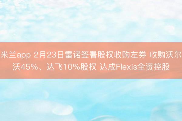 米兰app 2月23日雷诺签署股权收购左券 收购沃尔沃45%、达飞10%股权 达成Flexis全资控股