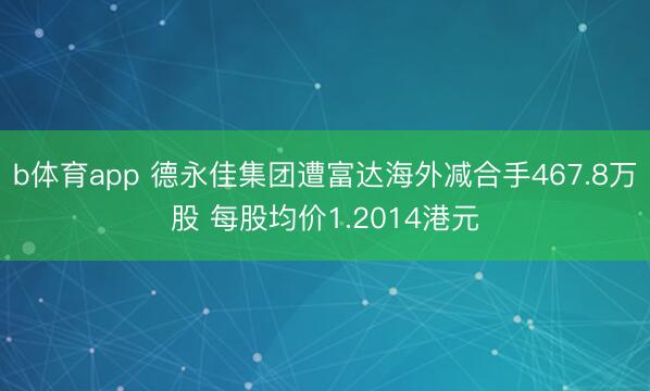 b体育app 德永佳集团遭富达海外减合手467.8万股 每股均价1.2014港元