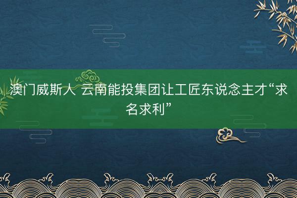 澳门威斯人 云南能投集团让工匠东说念主才“求名求利”