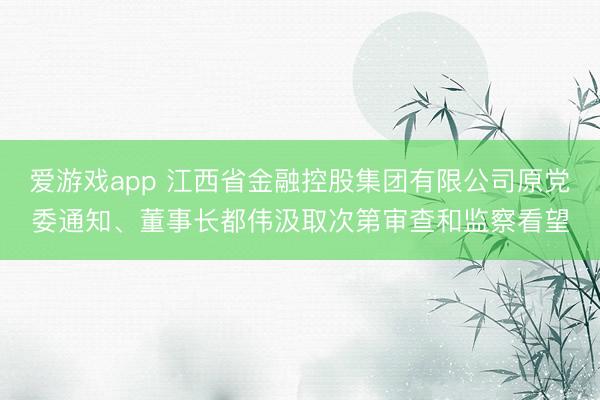 爱游戏app 江西省金融控股集团有限公司原党委通知、董事长都伟汲取次第审查和监察看望