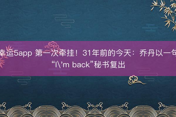 幸运5app 第一次牵挂!31年前的今天:乔丹以一句“I'm back”秘书复出
