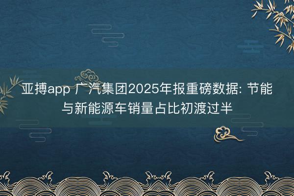 亚搏app 广汽集团2025年报重磅数据: 节能与新能源车销量占比初渡过半