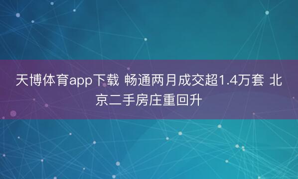 天博体育app下载 畅通两月成交超1.4万套 北京二手房庄重回升