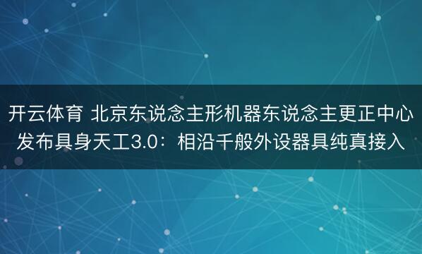 开云体育 北京东说念主形机器东说念主更正中心发布具身天工3.0:相沿千般外设器具纯真接入