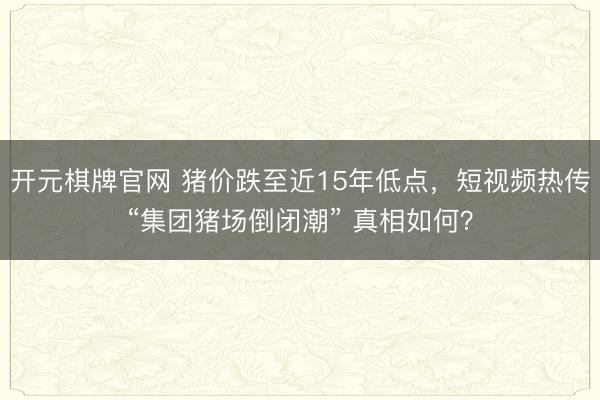 开元棋牌官网 猪价跌至近15年低点,短视频热传“集团猪场倒闭潮” 真相如何?