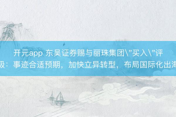 开元app 东吴证券赐与丽珠集团"买入"评级:事迹合适预期,加快立异转型,布局国际化出海