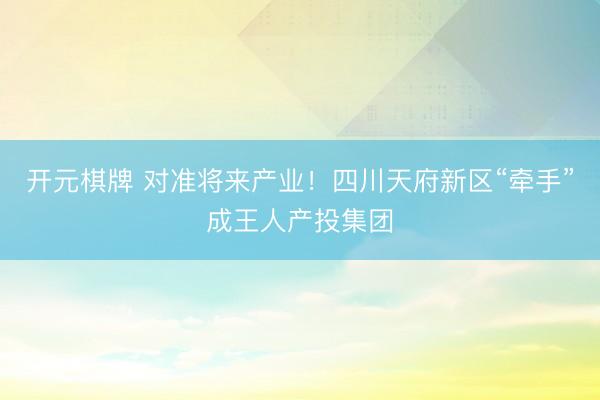 开元棋牌 对准将来产业!四川天府新区“牵手”成王人产投集团