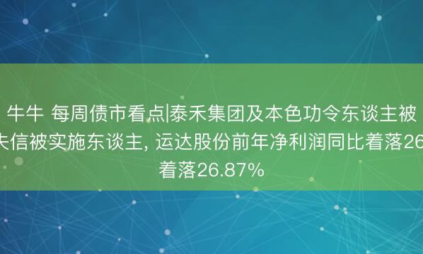 牛牛 每周债市看点|泰禾集团及本色功令东谈主被列为失信被实施东谈主, 运达股份前年净利润同比着落26.87%