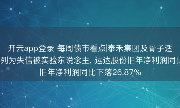 开云app登录 每周债市看点|泰禾集团及骨子适度东说念主被列为失信被实验东说念主, 运达股份旧年净利润同比下落26.87%