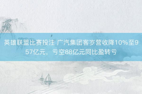 英雄联盟比赛投注 广汽集团客岁营收降10%至957亿元,亏空88亿元同比盈转亏