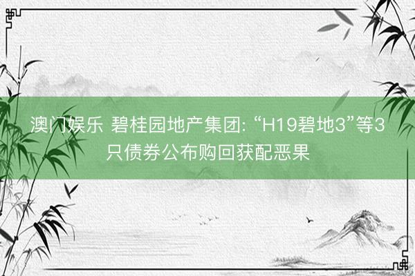 澳门娱乐 碧桂园地产集团: “H19碧地3”等3只债券公布购回获配恶果
