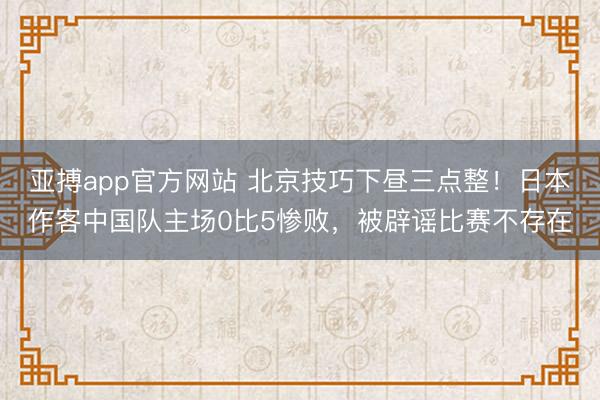 亚搏app官方网站 北京技巧下昼三点整!日本作客中国队主场0比5惨败,被辟谣比赛不存在