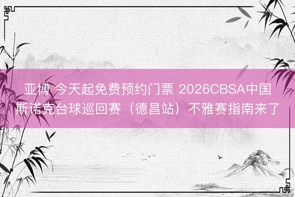 亚博 今天起免费预约门票 2026CBSA中国斯诺克台球巡回赛(德昌站)不雅赛指南来了