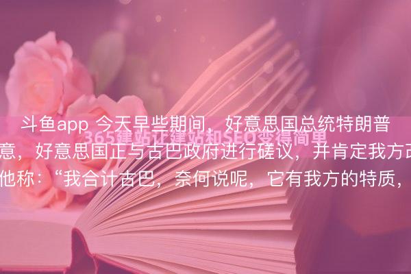 斗鱼app 今天早些期间,好意思国总统特朗普在卵形办公室对记者示意,好意思国正与古巴政府进行磋议,并肯定我方改日将有幸“拿下古巴”。他称:“我合计古巴,奈何说呢,它有我方的特质,旅游业和其他方方面面皆