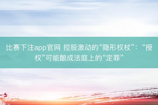 比赛下注app官网 控股激动的“隐形权杖”:“授权”可能酿成法庭上的“定罪”