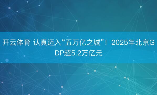 开云体育 认真迈入“五万亿之城”!2025年北京GDP超5.2万亿元