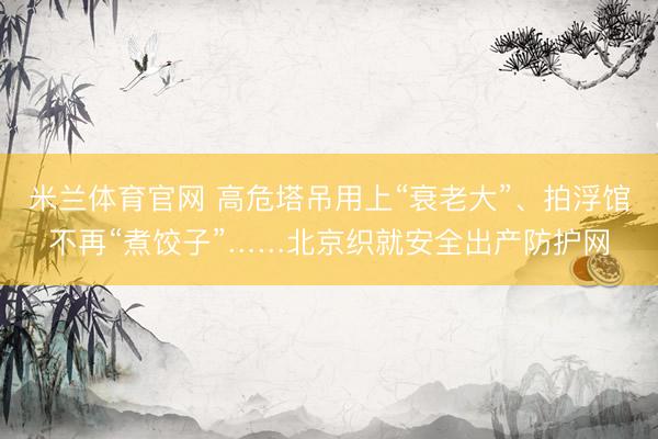 米兰体育官网 高危塔吊用上“衰老大”、拍浮馆不再“煮饺子”……北京织就安全出产防护网