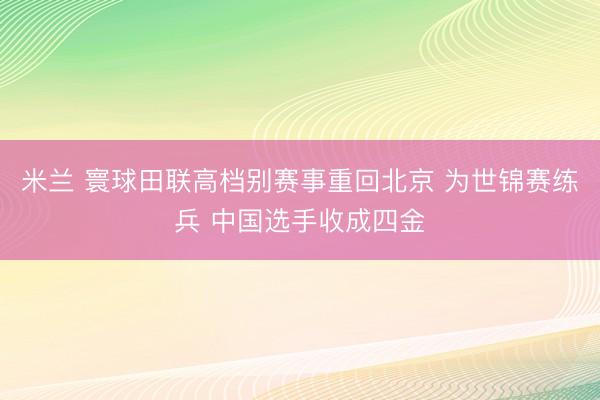 米兰 寰球田联高档别赛事重回北京 为世锦赛练兵 中国选手收成四金
