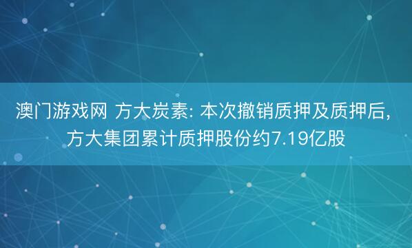 澳门游戏网 方大炭素: 本次撤销质押及质押后, 方大集团累计质押股份约7.19亿股