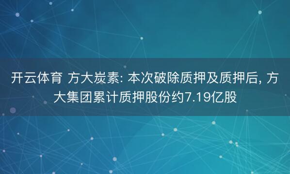 开云体育 方大炭素: 本次破除质押及质押后, 方大集团累计质押股份约7.19亿股