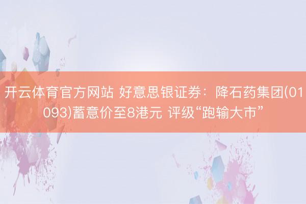 开云体育官方网站 好意思银证券:降石药集团(01093)蓄意价至8港元 评级“跑输大市”