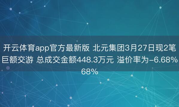 开云体育app官方最新版 北元集团3月27日现2笔巨额交游 总成交金额448.3万元 溢价率为-6.68%